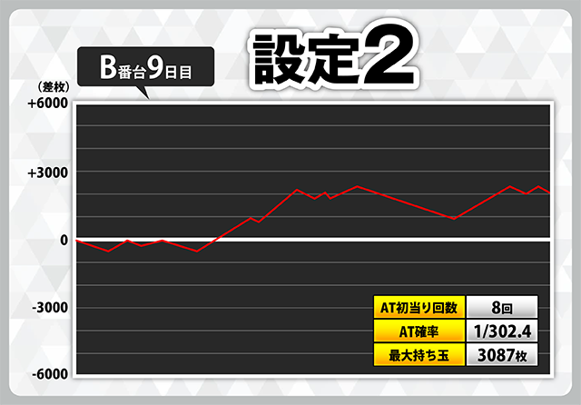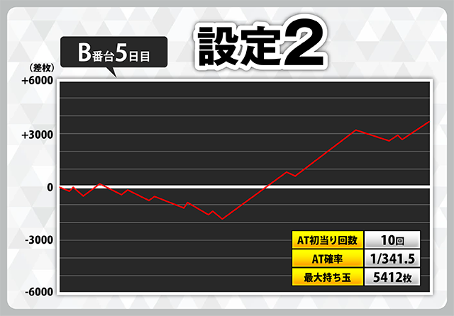 | 2 | +5215枚(設定5) | −3343枚(設定1) |