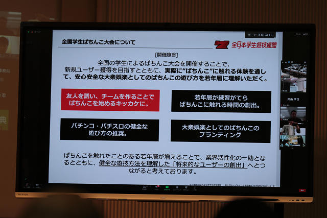 同団体の後援する現役学生による全日本学生遊技連盟の活動報告を行った。