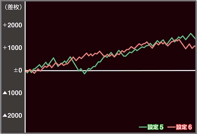 こちらが今回実戦した設定5・6のスランプグラフとトータルデータになります。