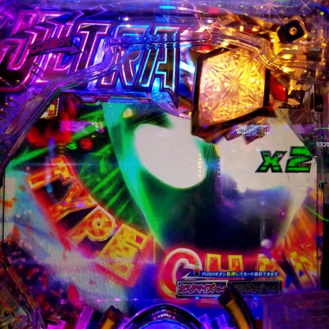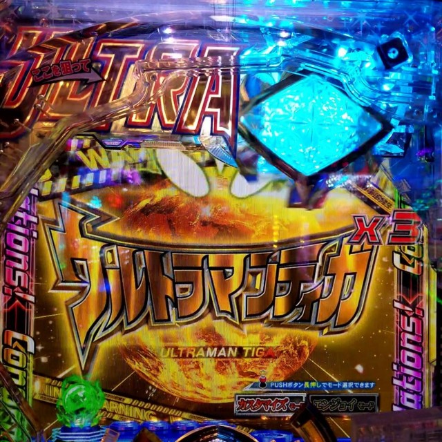 『ぱちんこ ウルトラマンティガ 1500×84』にて、通常時に虹ウルトラマン登場から一発告知のCongratulations、雷光モードから金タイトルで大当りゲットですねん!