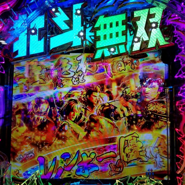 『P真・北斗無双 第4章』にて、 通常時に圧倒的なレインボー予告と共に北斗集結カットイン、究極闘拳からクレイジーギア・引けで大当りし、さらにジャギ鉄拳で真・幻闘BONUSをゲットですねん!