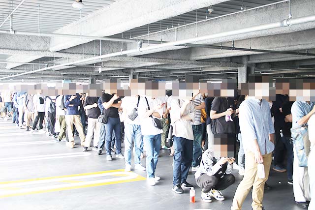 立体駐車場の2階に設けられた抽選会場には続々とユーザーが集合。この日は約400人が集まっていた。