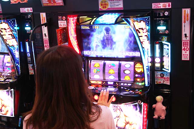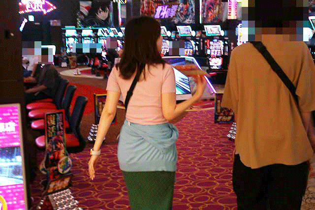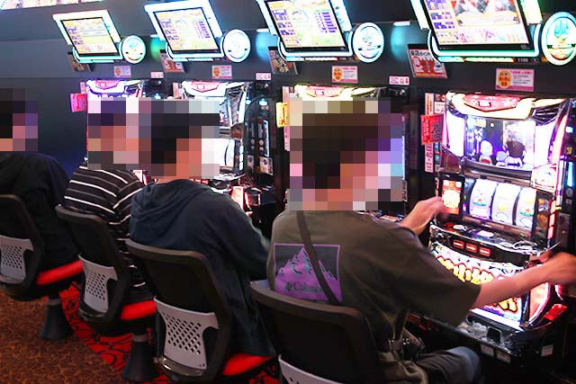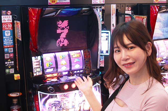 次々と入場するユーザーたちと一緒に、ナミも入店。向かったのはパチスロコーナーで、狙った台は…。