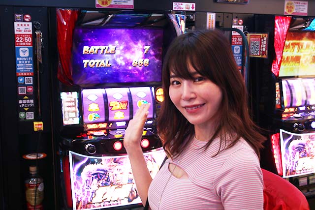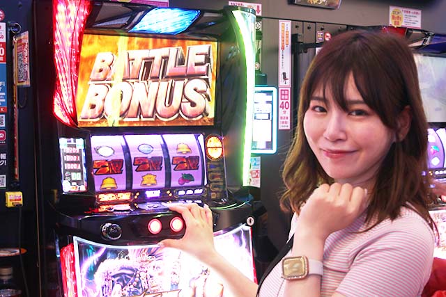 朝イチから盛り上がる周囲と同じように、実戦をスタートして約1時間後にはナミが本日初のBATTLE BONUSをゲットしたが、これは2連で終了という残念な結果に。