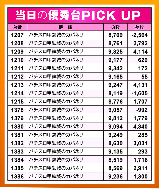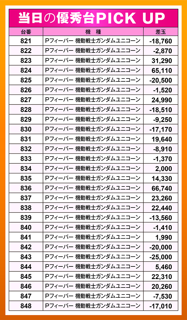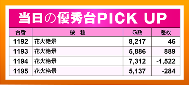 1,000pt以上の台が複数あり、4,000ptオーバーという見事な結果を残す台も。