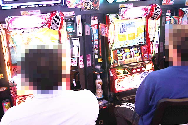 パチスロコーナーはスマスロの埋まりが早く、なかでも「HEY!エリートサラリーマン鏡」と「スロット ソードアート・オンライン」が人気。ナミが確保した「スマスロ北斗の拳」もユーザーの入場が終わる頃には満席。