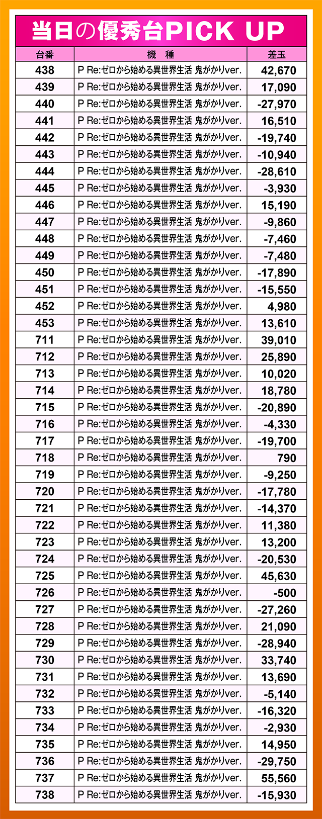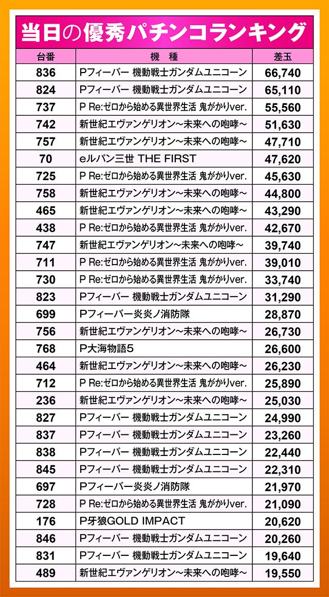 パチンコでは朝イチから人気を集めていた「P Re:ゼロから始める異世界生活 鬼がかりver.」が1日を通して高稼働。