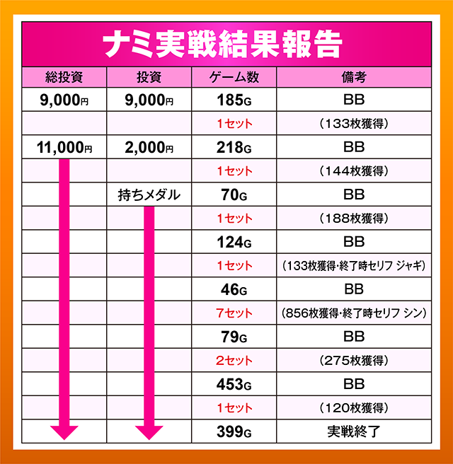 BATTLE BONUSは獲得するものの、あまり継続させられなかったナミのヒキが敗因か…。なにはともあれ、お疲れ様でした!