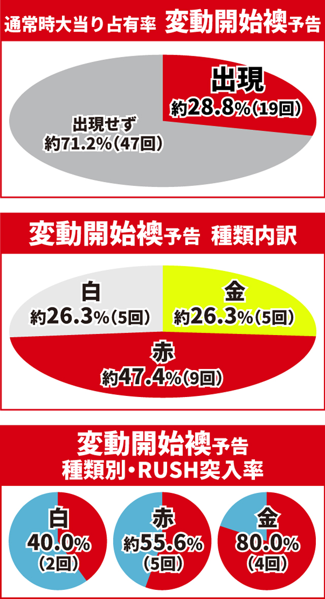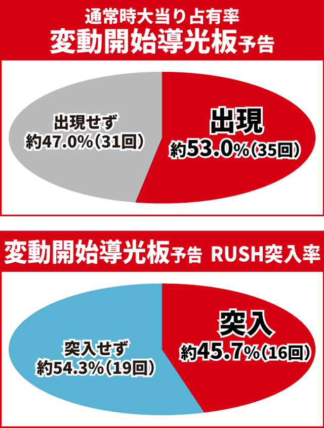 | 出現回数 | 出現割合(出現数) | RUSH突入率(突入数) |