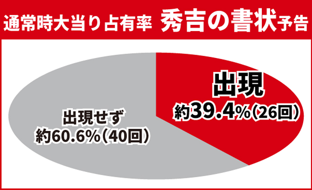 保留の上に書状が出現し、左下のサブ液晶に秀吉が現れてカウントダウンが発生。カウントが0になると予告やリーチのチャンスアップなどが発生する。発生時は左下のサブ液晶に襖が出現し、その色で期待度が変化。実戦では赤襖が最も多かった。