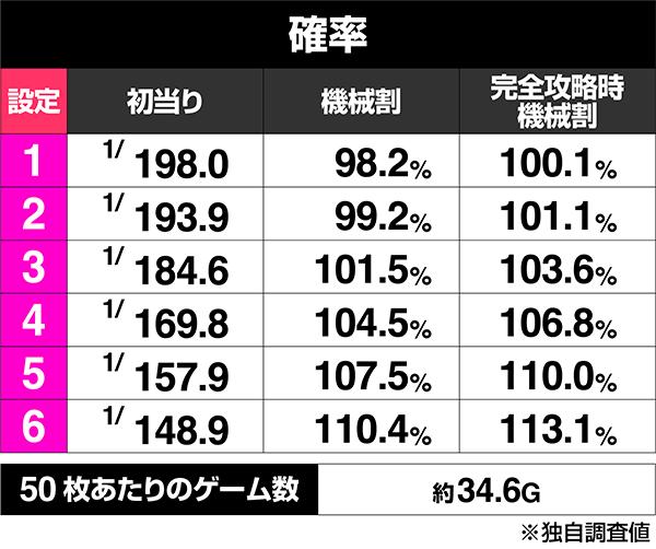 また、機械割も甘めに設計されており、完全攻略時は設定1でも100%超! 高設定域はスペックもかなり優秀だ。