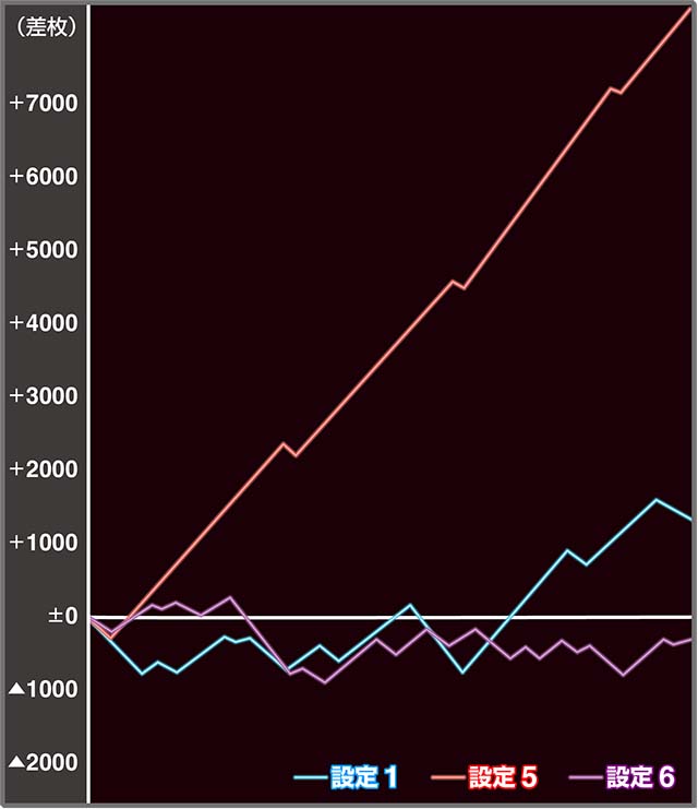 こちら今回試打をした設定1、5.6のスランプグラフとなります。