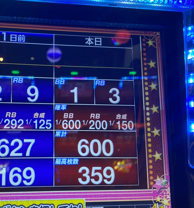 一見大したデータではないですが、両隣2台ずつが設定5・6のボーナス合算確率…。