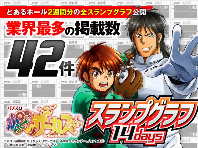 とあるホールから入手した人気機種のスランプグラフを、設定付きで一挙掲載する当企画。今回は『パチスロ からくりサーカス』の導入日から2週間分の全スランプグラフになります。