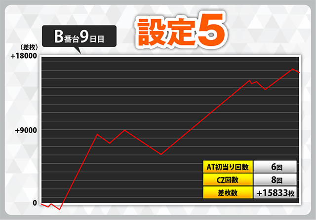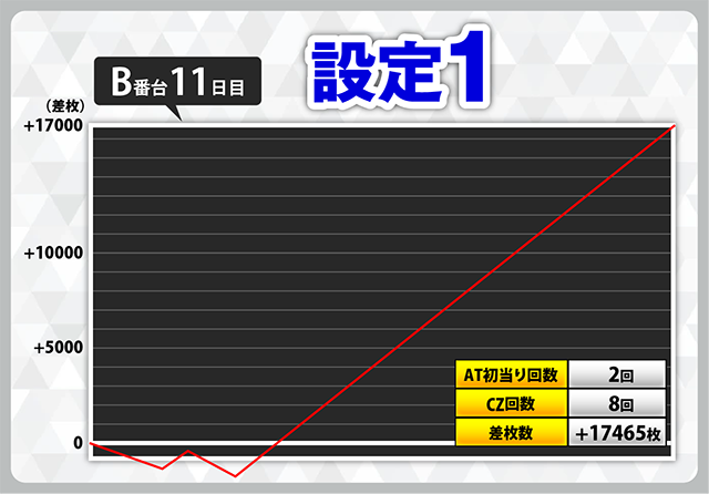 | 1 | +17465枚(設定1) | −5217枚(設定5) |