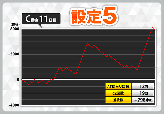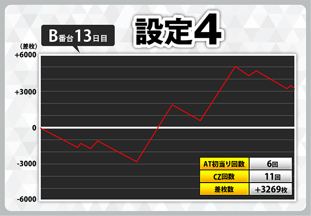 | 3 | +7984枚(設定5) | −4402枚(設定2) |