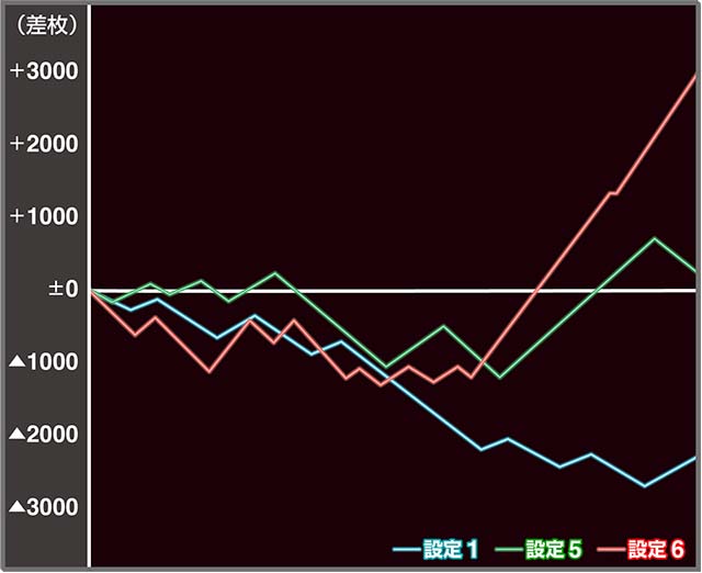 後述する設定推測ポイントについても、試行回数を重ねないと絞り込めない要素が多いので、スランプグラフや初当り回数などで安易に高設定を過信するのは危険。