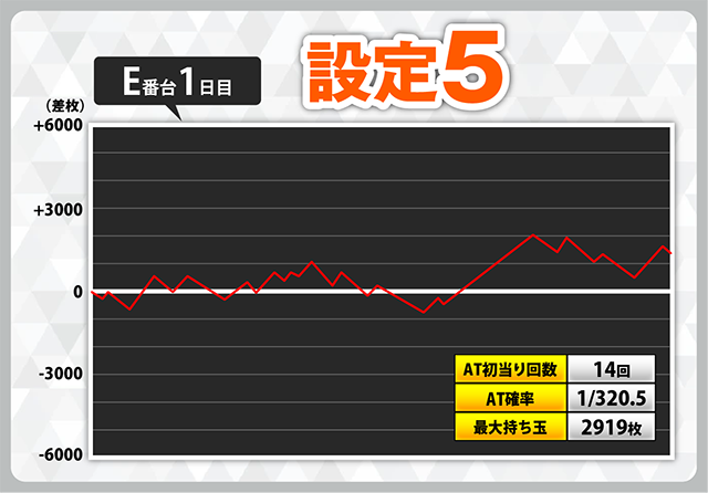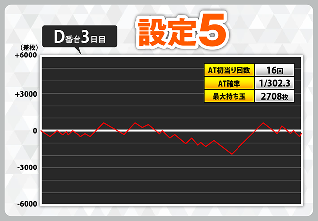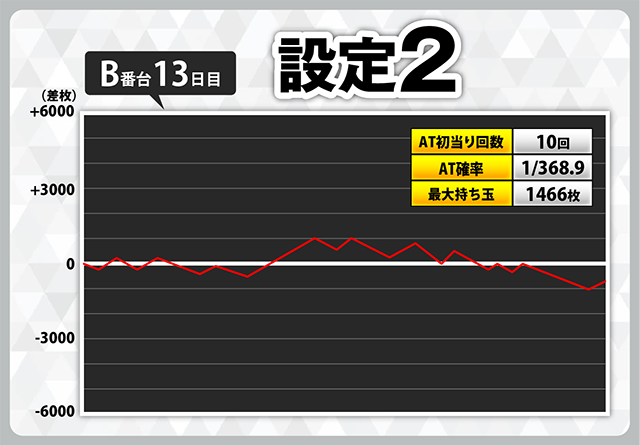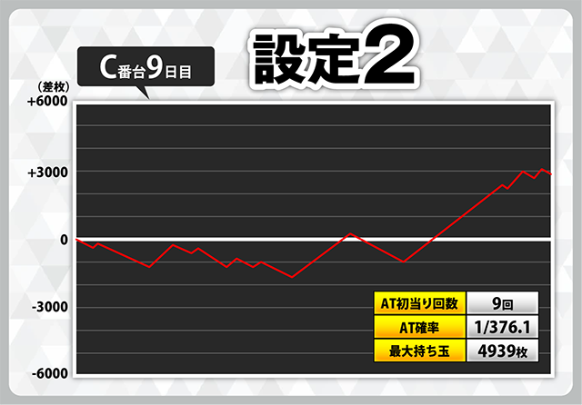 | 2 | +7044枚(設定5) | −4517枚(設定1) |