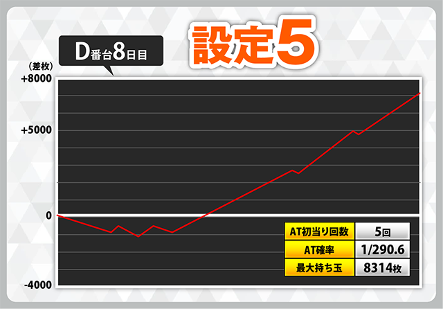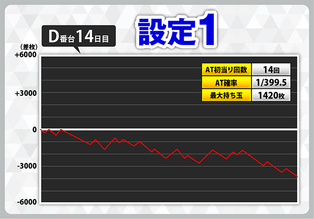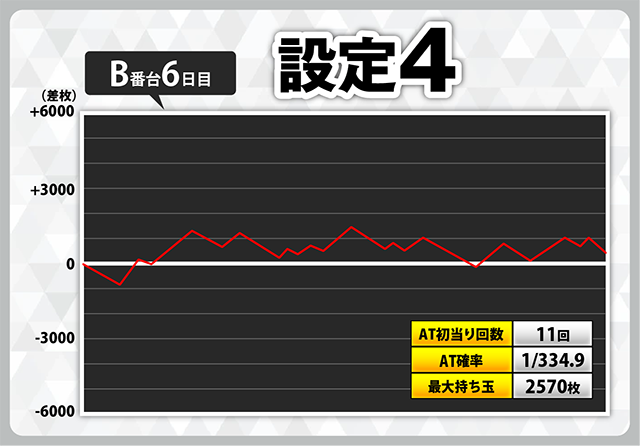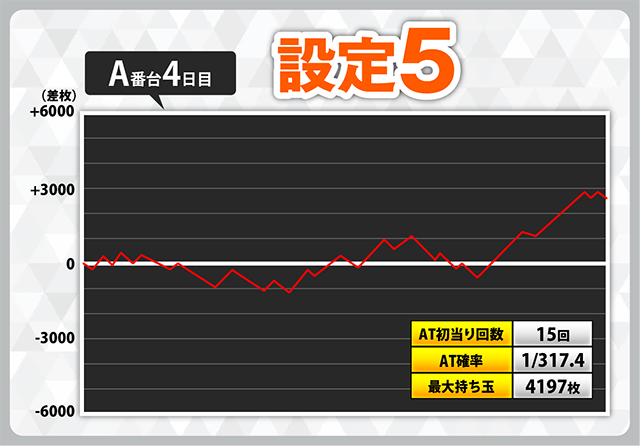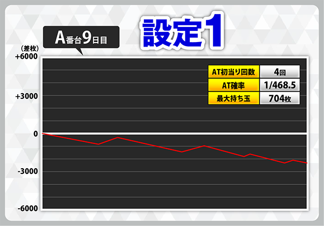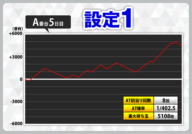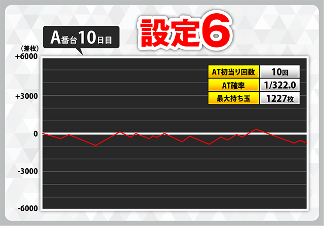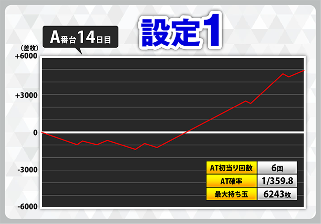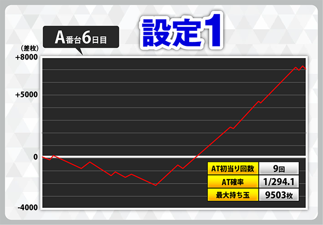 ただ、たとえ低設定でもA番台の6日目(設定1)のように、早い段階で上位ATに入れることができれば十分に大勝ちも期待できる結果となりました。