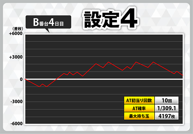 | 3 | +4988枚(設定1) | −3906枚(設定3) |