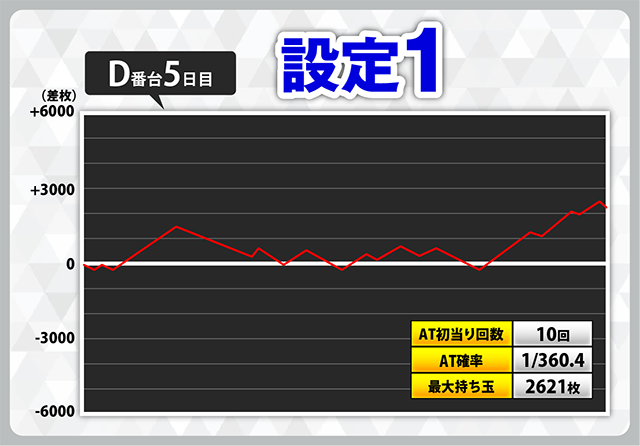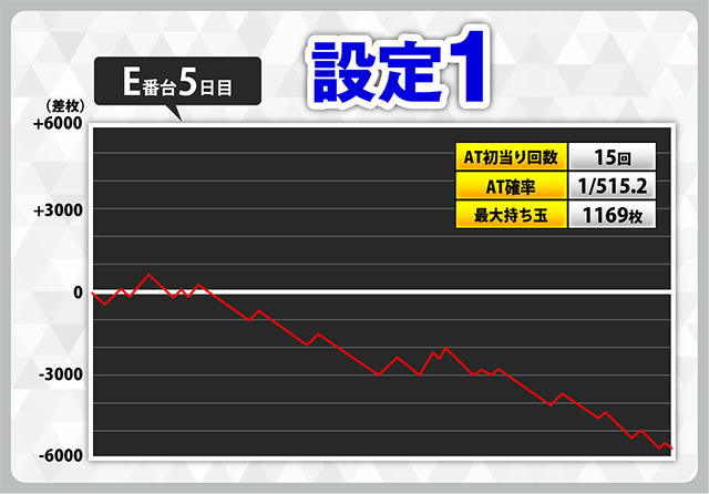 | 1 | +7073枚(設定1) | −5782枚(設定1) |
