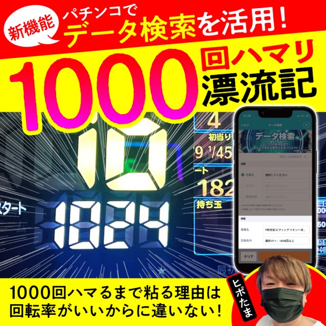 上記の仮説を検証すべく、暇さえあればアプリを開き【データ検索】で保存してある条件から1000回転ハマリ台を探す毎日。