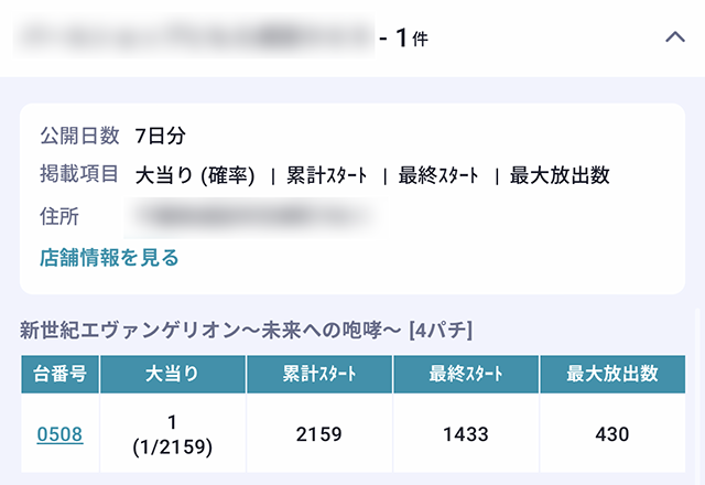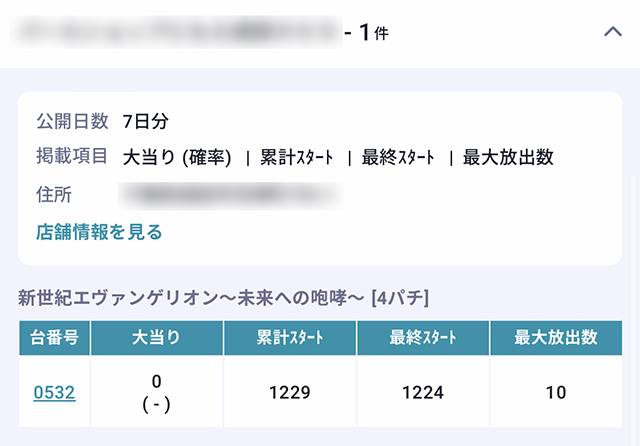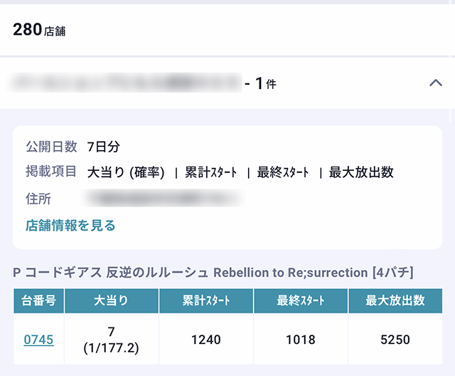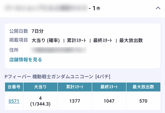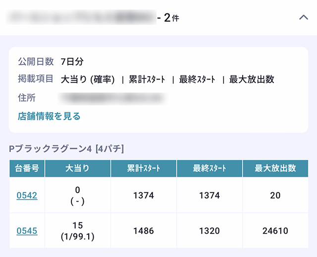 普段は収録の仕事もしているので、撮影帰りにデータ検索してみたところ『Pブラックラグーン4』の1000回ハマリ台が2台も検索に引っかかりました。