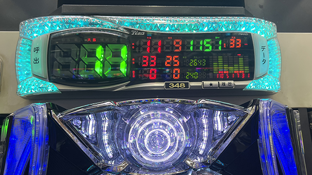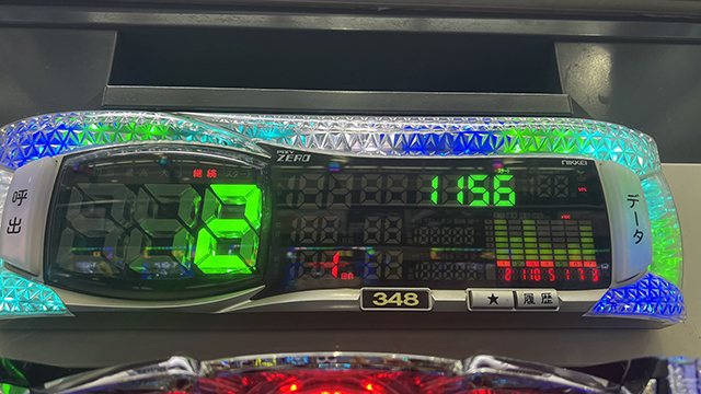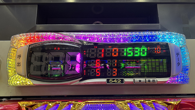 前回の野良1000回転ハマリも合わせるとこれで4台目。パチンコなんて2、30k打って何も起こらないことなんて日常茶飯事なのに、回したのはわずか380回転で、なんと5回目の初当りを引いています。
