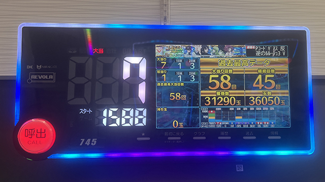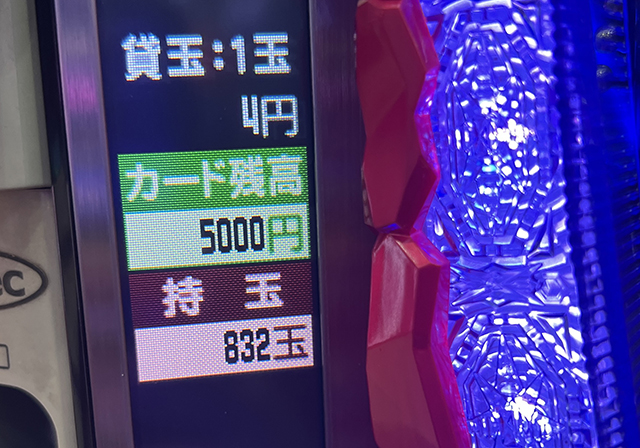 回転率に触れておきますと、5回転で当たり、保留も4個貯まっていてまだ上皿にも残っている状況でした。ざっくり18.0/1kとしておきましょう。