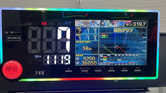 メイン機種ではない台が1000回転以上回されるというのは、それなりに強い根拠があってのことだとかなり期待していたのですが、残念ながら結果はついてきませんでした。
