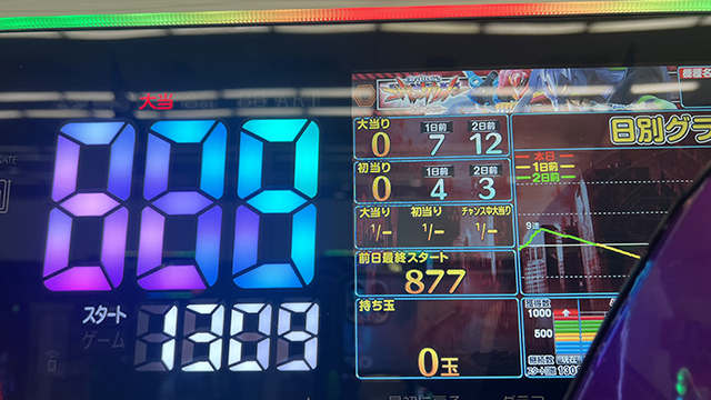 正直そこまで稼働のある台ではないので、もともと稼働の高い『エヴァ』や『リゼロ』の1000回転ハマリとは期待度が変わってきます。