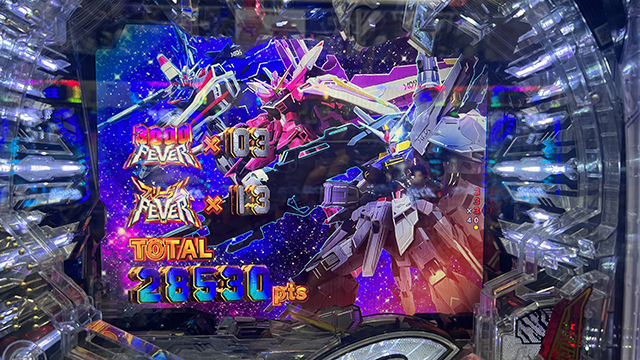 最終的に17連チャン、液晶表示で28530個まで伸び、『ガンダムSEED』の破壊力を体感するには十分すぎる実戦になりました。