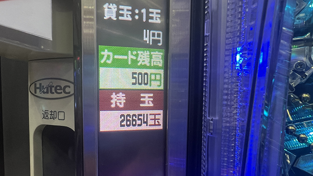 今までで一番手応えがあっただけにもう少し回したかったというのが本音ではありますが、投資0.5kで26654個の出玉を獲得して文句を言ってはいけませんね。