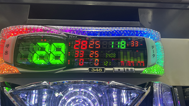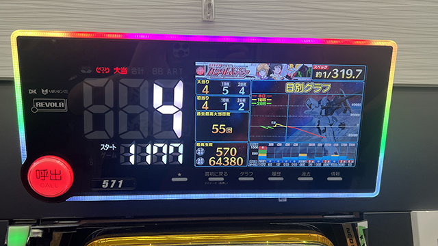 台の前に座りふと上を見上げると、データ機に映るスランプグラフが振り切れています。これはかなりオイシイ匂いがします。