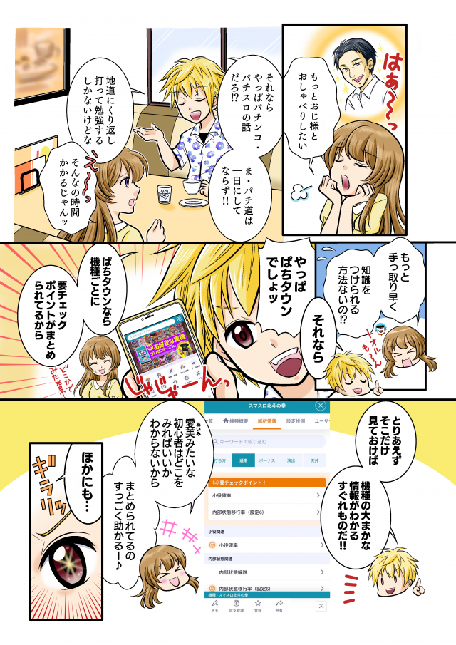 これらを実現するため、たくさんの役立つ機能を搭載したぱちタウンアプリの使い方チュートリアルを、漫画でご紹介しています。