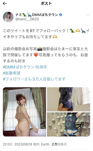 現在10周年企画のひとつで「X(旧Twitter)フォロワーUPキャンペーン」を開催しているのですが、いかんせん新規フォロワーさんが増えずに苦戦中。水着の写真ではインプレッションが伸びるけど、パチンコ・パチスロの画像は伸びなかったり。