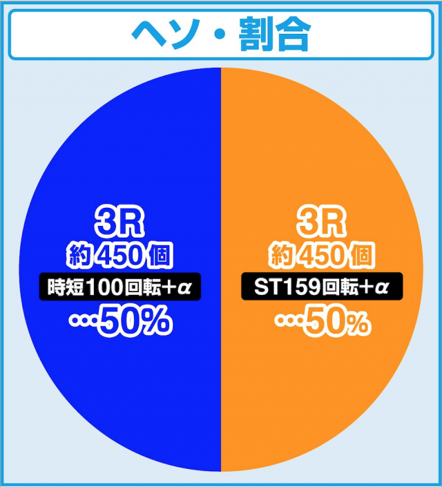 初当りの50%はST直行で、残りの50%には時短100回転+αが付きます。直行と時短引き戻しをあわせたST突入率は約64%と、入り口が広くなっています!