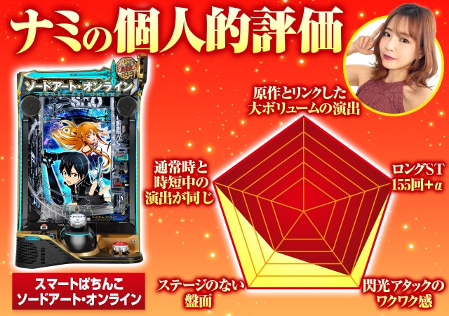 あくまでパチンコライターとしてSNSを盛り上げていきたいので、頭を悩ませています。そんなパチンコライターの私が今回紹介する機種は、『スマートぱちんこ ソードアート・オンライン』です。