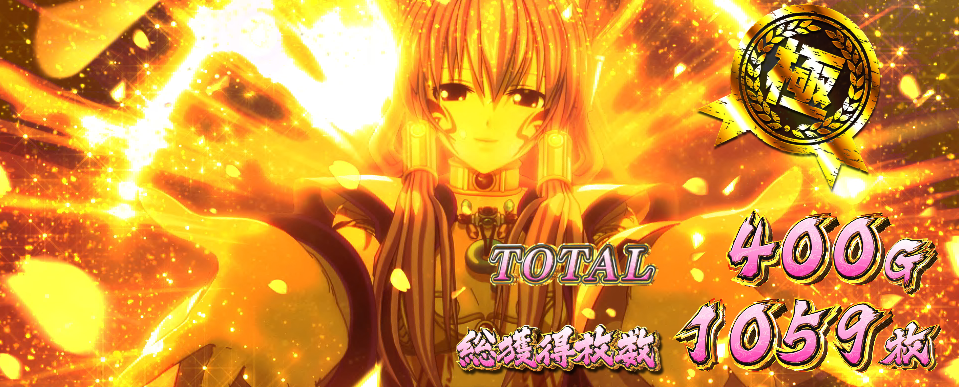 しかし設定1-②ではAT中の自力要素である「乙女出陣チャンス」(出陣ボーナスのキャラをレバーでガチ抽選)で強キャラを引くなどチャンスをつかみ、一気に出玉を増やしてプラスで終了。