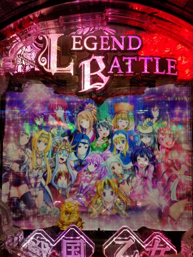 『P戦国乙女 LEGEND BATTLE』にて、通常時の金保留と共に全員集合カットインで大当りゲットですねん!(モンちゃんさん)