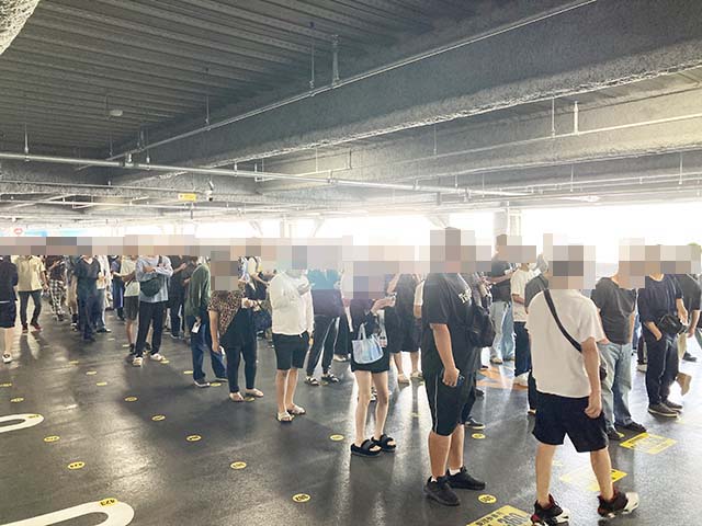 8時過ぎになると、抽選場所の立体駐車場に多くのユーザーが集まってきた。