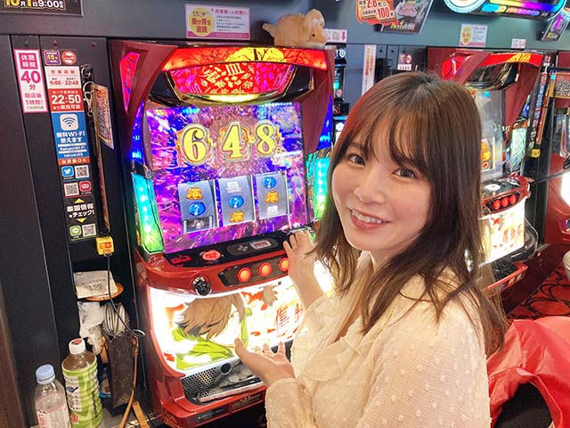 巡ってきたチャンスをものにできず、不甲斐ないといった様子のナミ。だが、実戦中には何度も笑顔をみせており、楽しく遊技をおこなえていることが伝わってきたぞ。