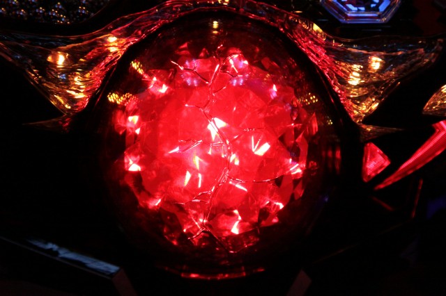 実際は無色だが、プロジェクションマッピングで光りの反射・艶までを見事に表現している