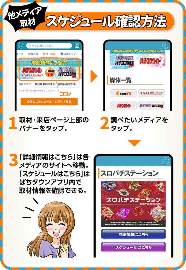 全5媒体の取材・来店スケジュールをチェックすることができます。