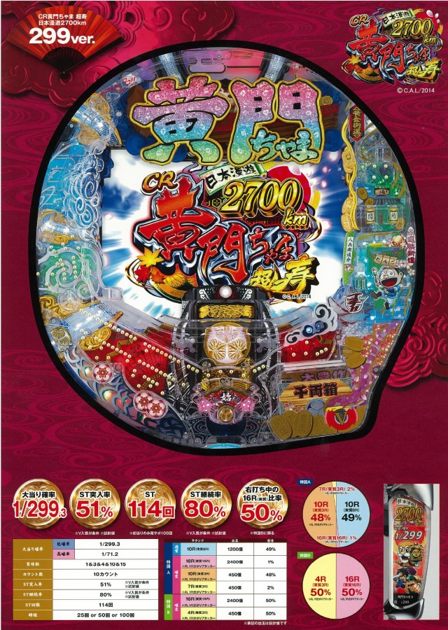 株式会社平和(東京都台東区、嶺井勝也社長)は、『CR黄門ちゃま 超寿 日本漫遊2700㎞』を発売。