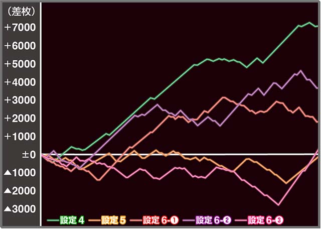 設定6と比べてもスルー回数に差があまり見られず、従来とは違う部分に設定差があるのかもしれないので、解析情報が待ち遠しいところです。