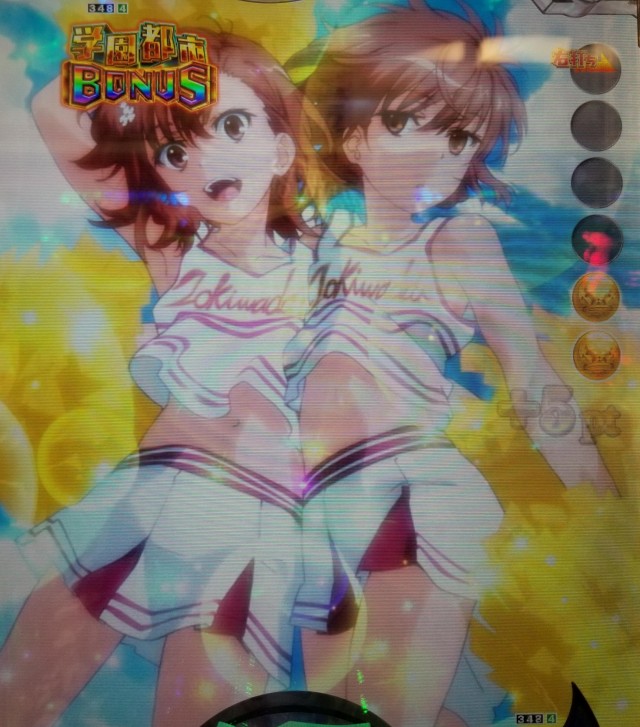 『Pとある科学の超電磁砲』にて、右打ち大当りの二人のシークレット・カットインで超電磁砲BONUS2000をゲットですねん!