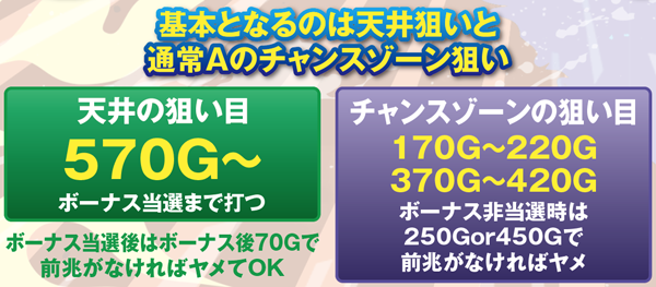本機には一般的なAT機と同じく天井ATが搭載されている。999Gハマリ+前兆ゲーム数の消化で発動する模様だが、本機の天井はあくまで「ハマリの救済措置」であってAT当選以上の特典はないようだ。天井狙いには相応のリスクがあることを覚えておこう。