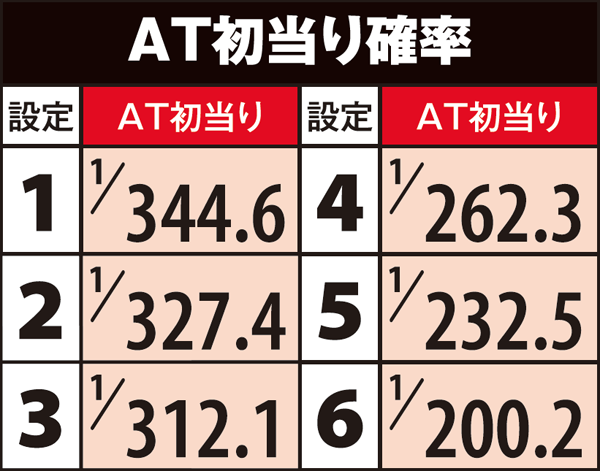 設定推測における基本中の基本。高設定はとにかく大ハマリが少ないので、AT初当り出現率を常にチェックしよう。中でも設定6のAT初当り確率は別格だ。
