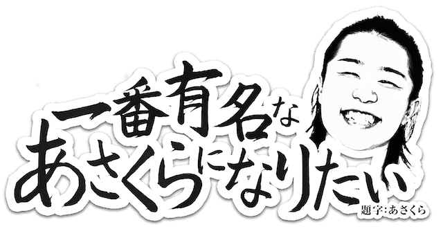 最初に紹介するのは、3歳からパチスロを愛し続けるあさくら(@asakura_tezza)の番組「一番有名なあさくらになりたい」。習字が得意なあさくら本人が、ロゴの題字を書いています。